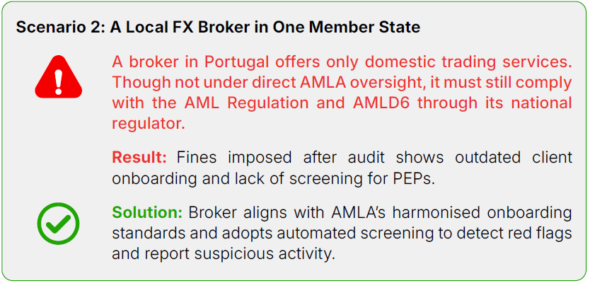 Even firms not directly supervised by AMLA will be subject to its harmonised rulebook and risk-based standards, enforced through national supervisors under AMLA coordination.