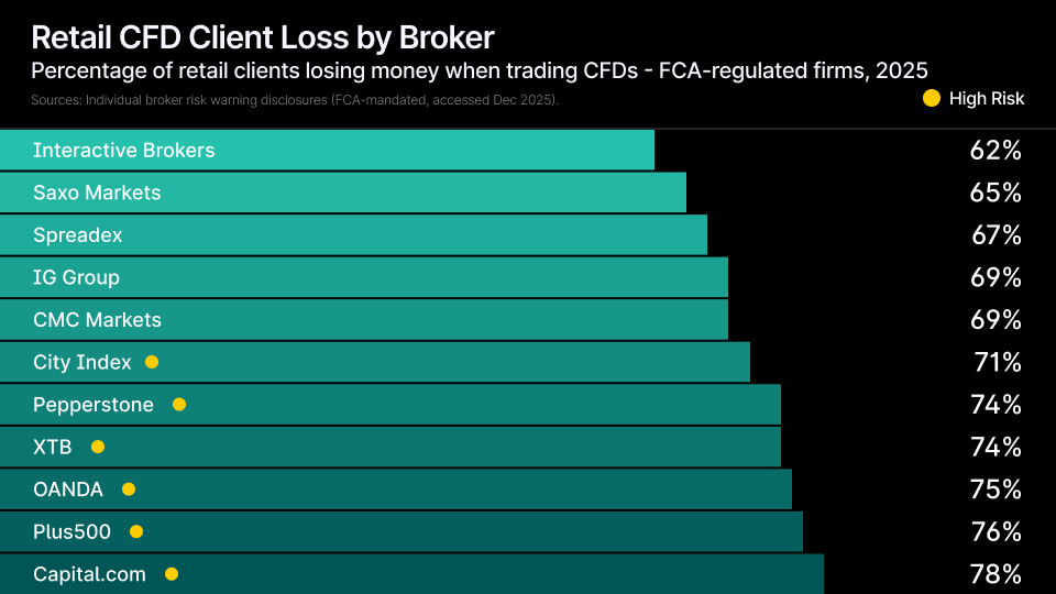 The UK CFD market is contracting but intensifying. Active leverage traders fell to 167,000 in 2025, down from 173,000 the previous year, according to Investment Trends. Yet dormancy rates hit a five-year low, suggesting a smaller but more engaged cohort. Meanwhile, retail loss rates remain stubbornly high - approximately 80% of CFD customers lose money, with broker-reported figures ranging from 46% to over 80%.