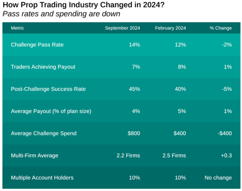 We have hard data based on 300,000 prop trading accounts, revealing how the industry transformed throughout 2024. Let's check them together.