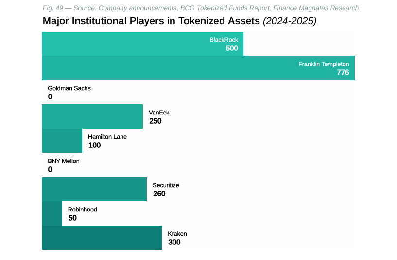 JPMorgan’s Kinexys network has processed $1.5 trillion in tokenized transactions by end-2024, demonstrating institutional-scale adoption. Goldman Sachs is preparing three tokenized products for rollout by year-end 2025, while partnerships between established firms like BNY Mellon and Goldman Sachs signal broad industry acceptance.