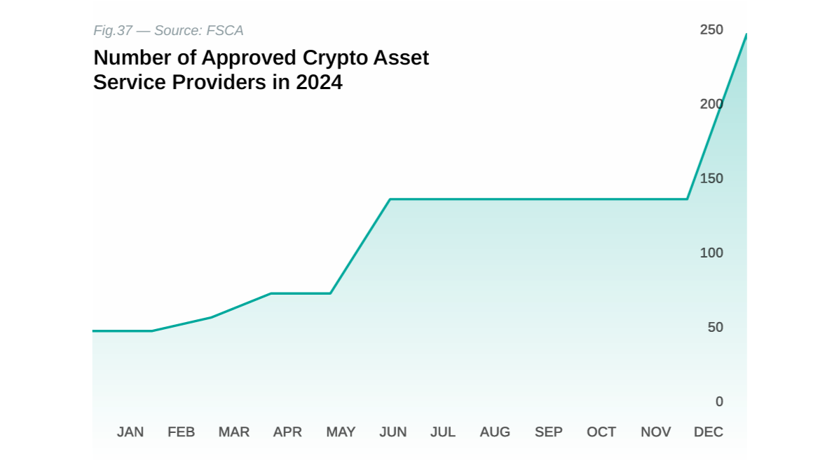 Since introducing crypto asset service provider (CASP) licensing in mid-2023, the FSCA has approved 248 licenses, rejected nine applications, and is reviewing another 56. This significant regulatory activity underscores the country’s role as a leader in Africa for financial innovation and oversight.