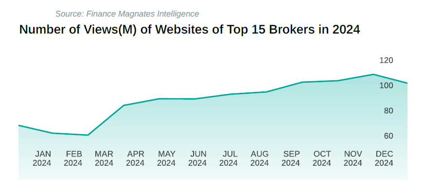 The data on website views for the top FX/CFD brokers in 2024 provides an interesting snapshot of traffic distribution but may not fully reflect the dynamics of the entire market. It’s worth considering that website views alone may not account for all trading activity or customer engagement, as these metrics can vary due to differences in regional presence, marketing strategies, and market positioning of each broker. Nevertheless, the numbers offer valuable insights into how user interest evolved over the year.