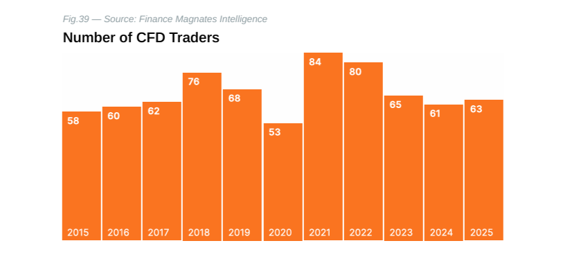 In comparison to other markets, Germany's 63,000 active traders exceeds Singapore's 38,000 but falls short of Hong Kong's approximately 100,000 CFD traders. France has also seen declining participation, with active traders falling from a pandemic peak of 38,000 to 29,000 currently.